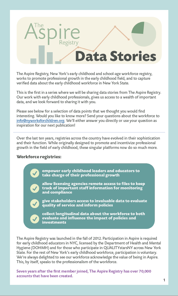 The Aspire Registry works to promote professional growth in the early childhood field, and to capture verified data about the early childhood workforce in New York State.
