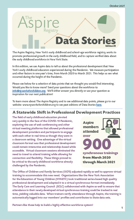 On this page, we will share data stories from the registry as our work with early childhood professionals gives us access to a wealth of important information. Feel free to view our most recent and past editions.